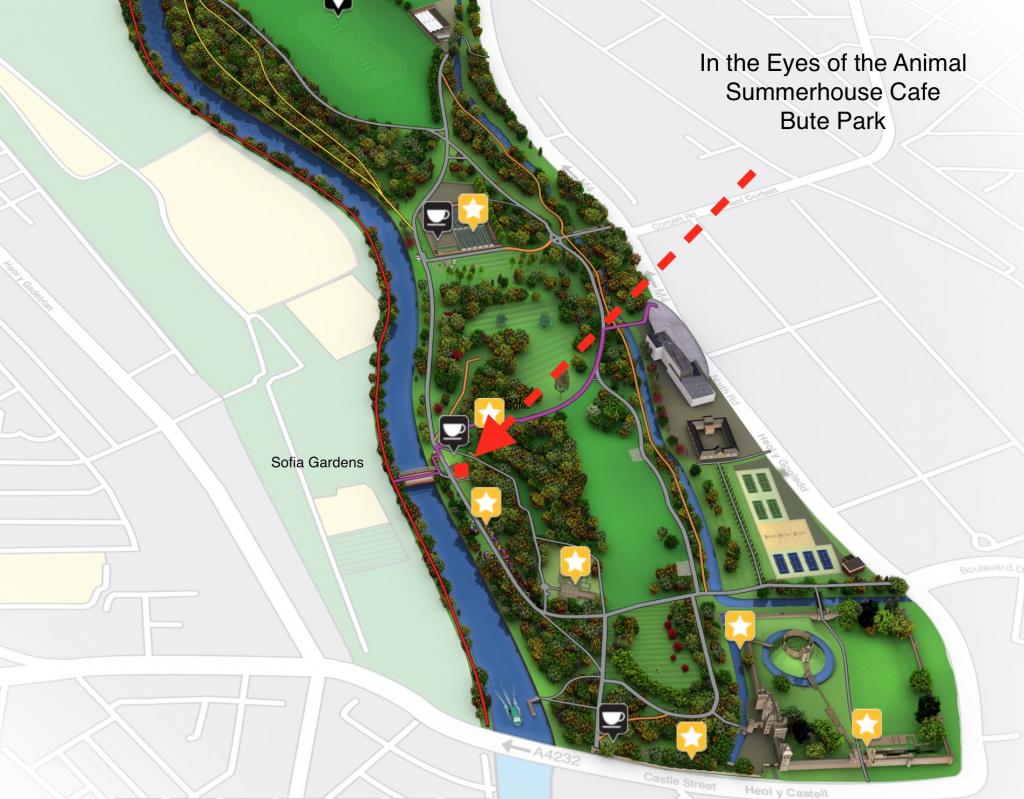Map showing location of In the Eyes of the Animal in Bute Park. Cardiff.